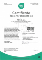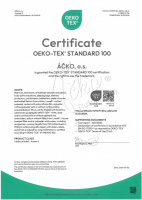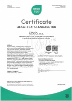Táto známka symbolizuje, že dané výrobky sú pravidelne testované v certifikovanom skúšobnom ústave asociácie OEKO-TEX® a obstáli v teste s pozitívnym výslednom vo viac ako 100 parametroch dôležitých pre zdravie človeka.
