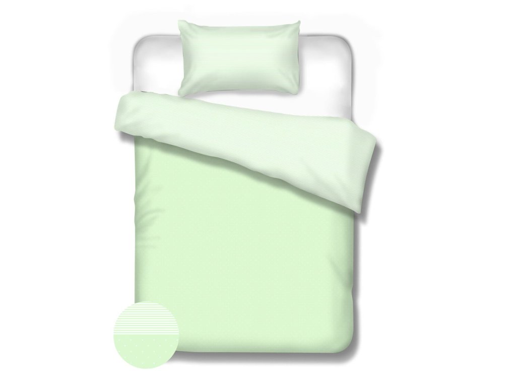 Bavlnené obliečky s jemnými bodkami a pásikmi v bielo zelenej farbe s praktickým zipsovým uzáverom.