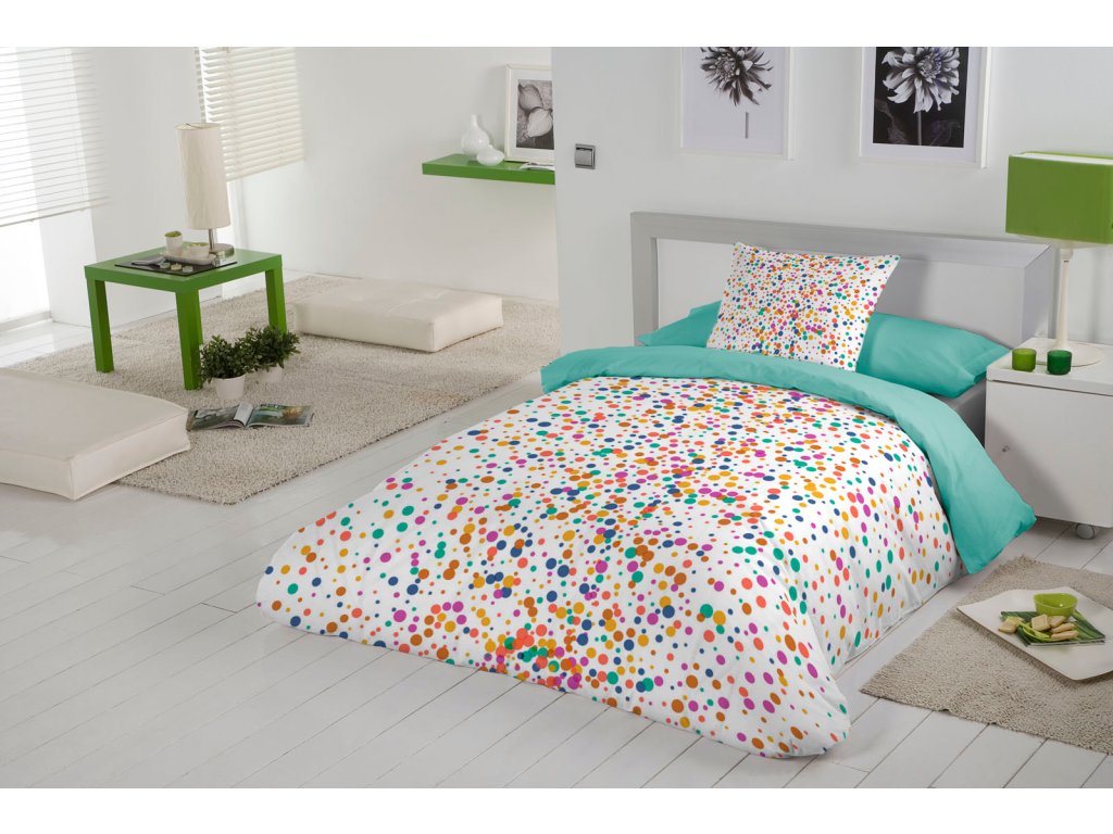 Nádherné posteľné obliečky s pestrofarebnými bodkami, rozžiaria aj tú najnudnejšiu izbu. Obliečky s motívom bodiek pre veselé duše.
