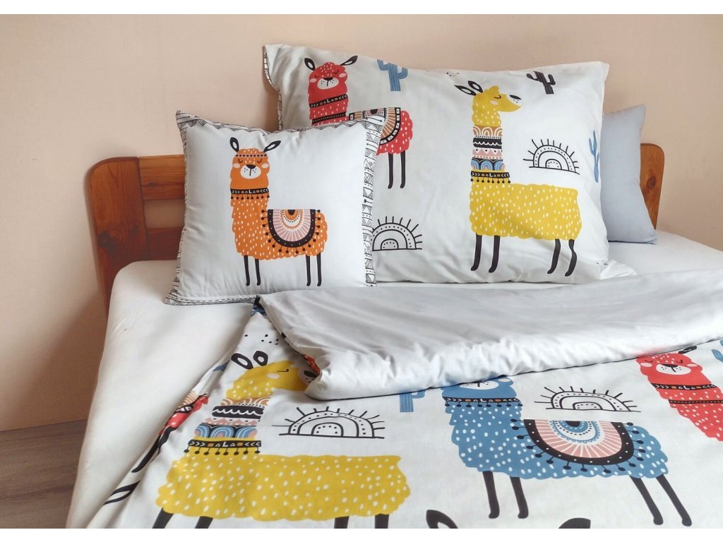 Rozprávkové obliečky s potlačou pestrofarebných lám. Veselé zvieratká, ktoré sa vždy radi zabávajú.