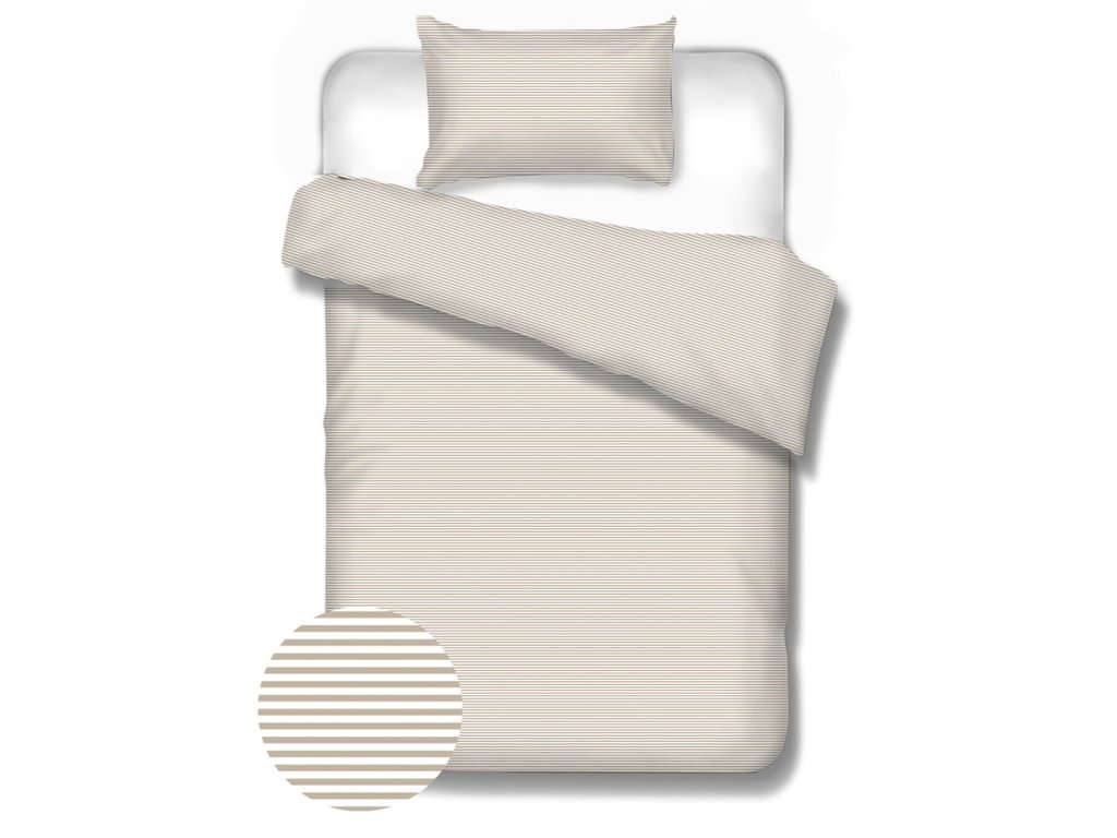 Obľúbené pastelové obliečky s jemnými hnedými a bielymi pásikmi zo 100% bavlny.