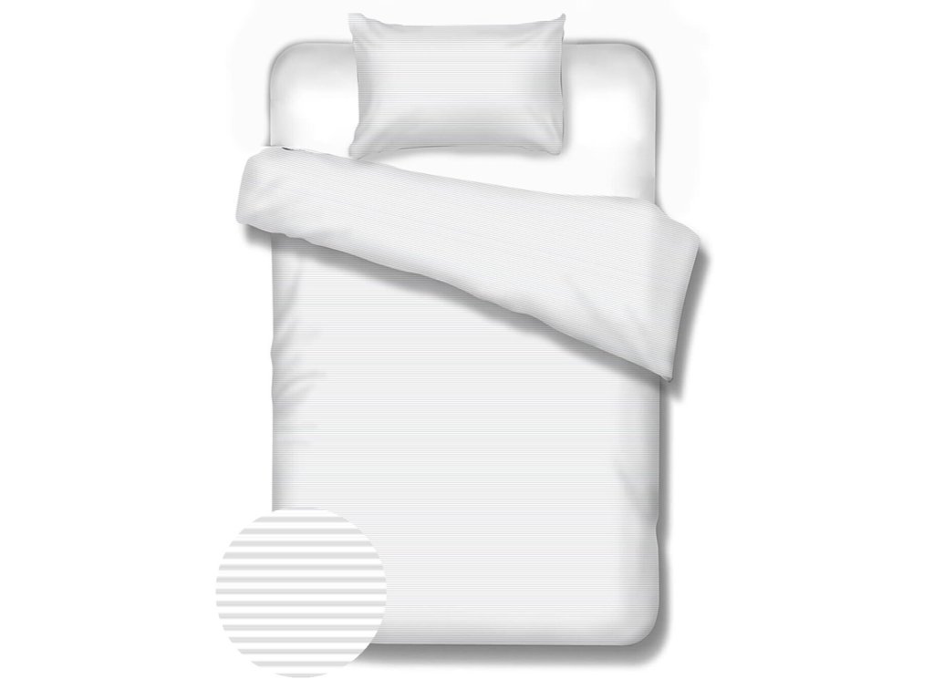 Obľúbené pastelové obliečky s jemnými sivými a bielymi pásikmi zo 100% bavlny.