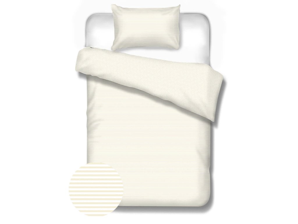 Obľúbené pastelové obliečky s jemnými žltými a bielymi pásikmi zo 100% bavlny.