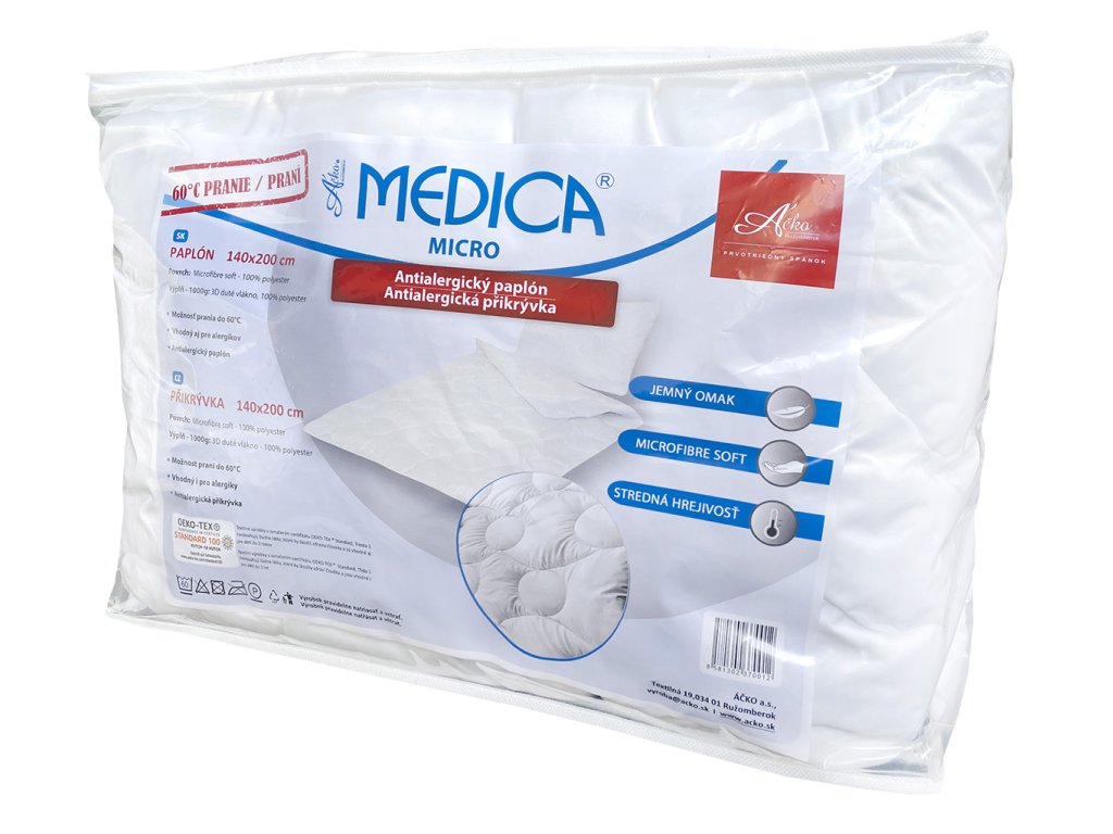 Paplón MEDICA MICRO s výbornou splývavosťou pre dokonalý spánok. Hrejivý antialergický paplón z certifikovaných materiálov vhodný do chladnejších nocí. V rozmeroch 140 x 200 cm.