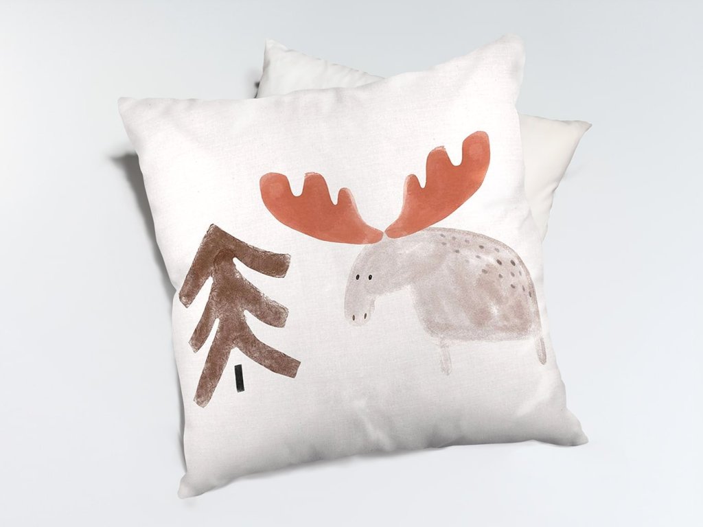 Dekoračný vankúšik s hravým motívom jeleňa Matúša, ktorý prinesie do vášho interiéru atmosféru prírodného šarmu.