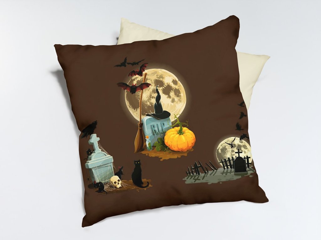 Dekoračný vankúšik so strašidelnou potlačou na tmavohnedom podklade s praktickým uzáverom na zips. Nenechajte sa vyľakať a pridajte do svojej detskej izby príjemne nečakaný zážitok.