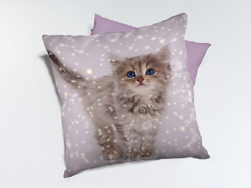 Dekoračný vankúšik s pôvabným vzorom mačiatka, ktorý dodá vášmu domovu útulný a príjemný vzhľad.