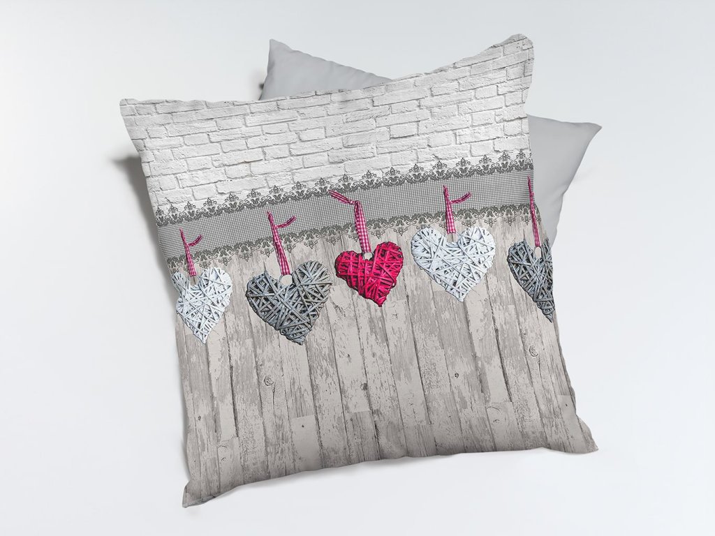 Dekoračný vankúšik s jemným motívom srdiečok, ktorý prinesie do vášho interiéru láskyplnú a romantickú atmosféru.