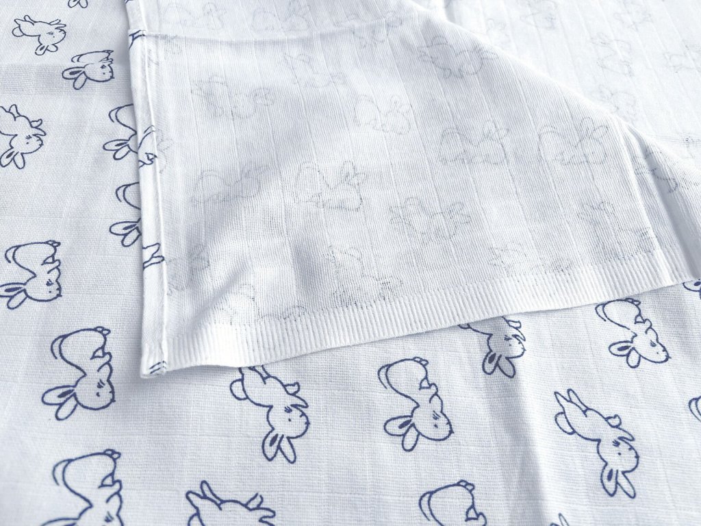 Bavlnené plienky s potlačou zajkov zo 100% bavlny.